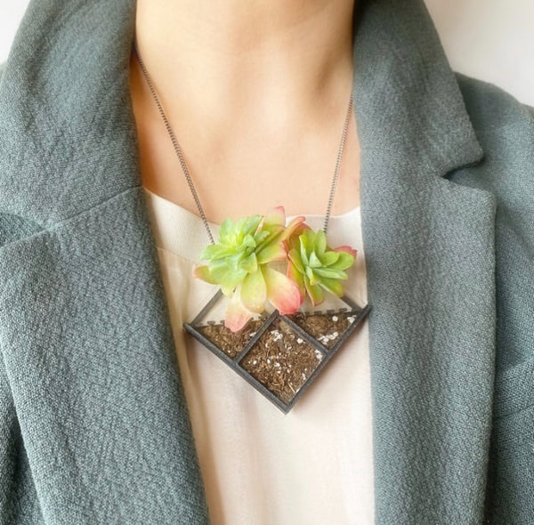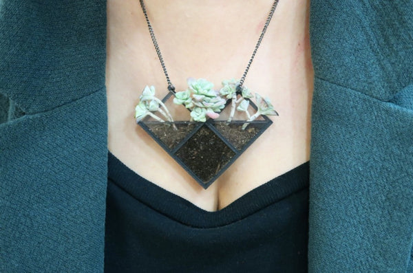 Consider gently uprooting a small plant that you like, then replant it by passing the roots through the grid of your jewelry.